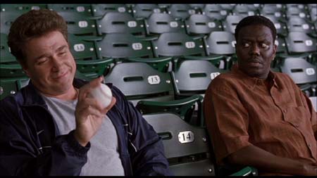 即使從來算不上是好萊塢的一線喜劇演員,但是在很多電影當中觀眾常常有機會領受來自這位演員所散發的歡樂氣息。這樣的效果在本片中更是發揮得相當出色,包括在釀酒人主場Miller Park的背號退休儀式當中當眾遭到前隊友的羞辱(註二)、發表背號退休感言時鼓動群眾的激昂演說、重回球場前見識到諸如皮拉提斯等各種號稱「現代科技」訓練法時的手足無措,一幕接著一幕的喜感都讓本片笑聲不斷。尤其是片子即將結束前的最後一幕,相信不少人看了都會發出會心的一笑吧?
